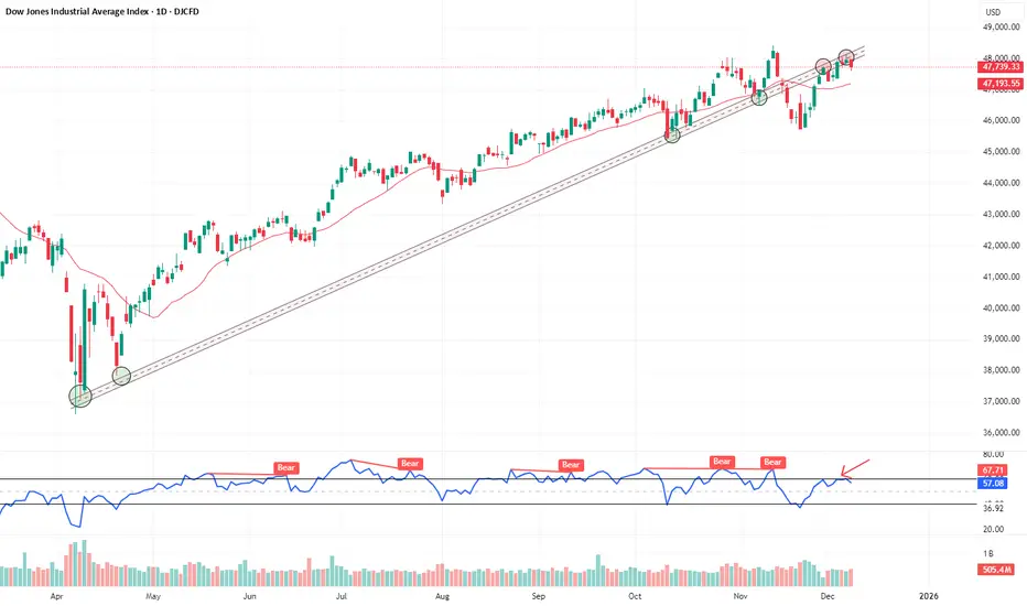 🔹 RSI bearish range shift (marked by repeated failures to cross 60)