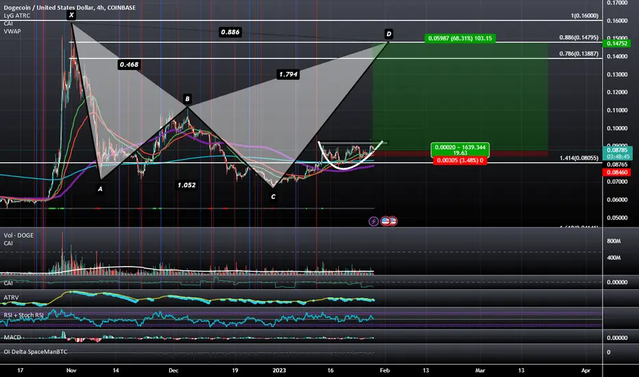 Dogecoin has been hitting the same high over and over and recentlyy has been making higher lows each time; it would seem that it intends to eventually crack that hard resistance level and when it does it will likely pump to the nearest resistance up at the B point at 11.2 cents and after that the 0.886 BAMM Retrace up at 14.8 Cents.