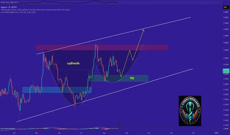 It appears that the price is forming a cup and handle pattern, and if this occurs, it could push the price above $0.30 & reach to top of the channel.
