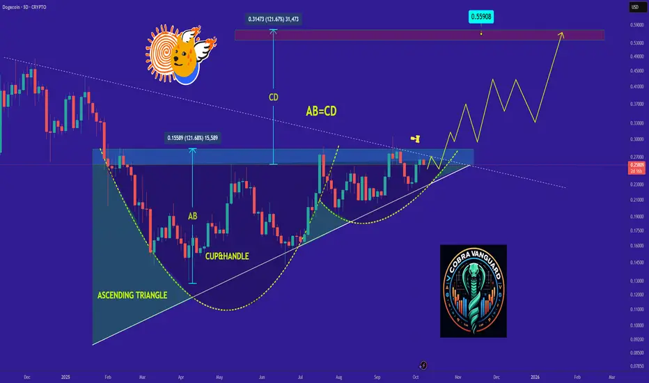As you can see, the price is forming two bullish patterns on the 3D timeframe, If my view is correct, DOGE will rise to 0.50 .