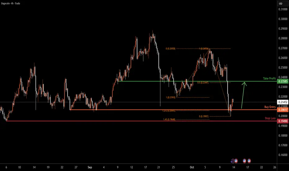 Buy entry is at 0.20657, which is a multi swing low support that aligns with the 127.2% Fibonacci extension.