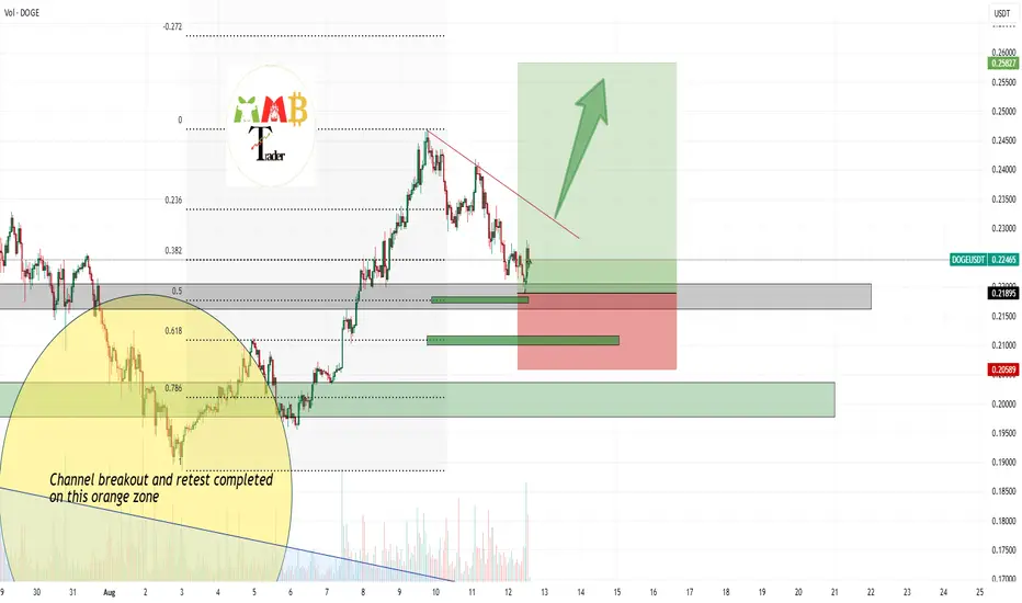 DOGE start to see huge gain so i am entering this trade at one of the most important Fibonacci support levels which is 0.5 Of Fib retracement and i put my stop loss below the 0.61% fib level which if it break market can see more dump then.