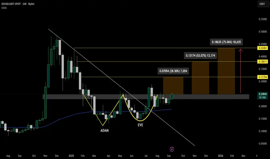 As long as DOGE holds above $0.23,it remains bullish. A weekly close below this level would weaken the structure and could trigger a retest toward $0.20.