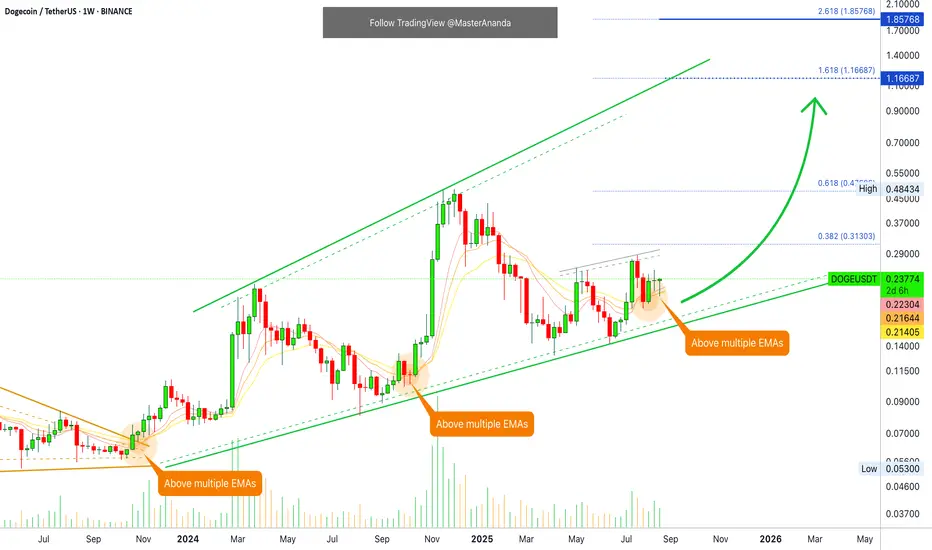 This week is the fourth week that DOGEUSDT has been trading above support and seeing this support holding once more—support confirmed—simply ends the period of doubt.