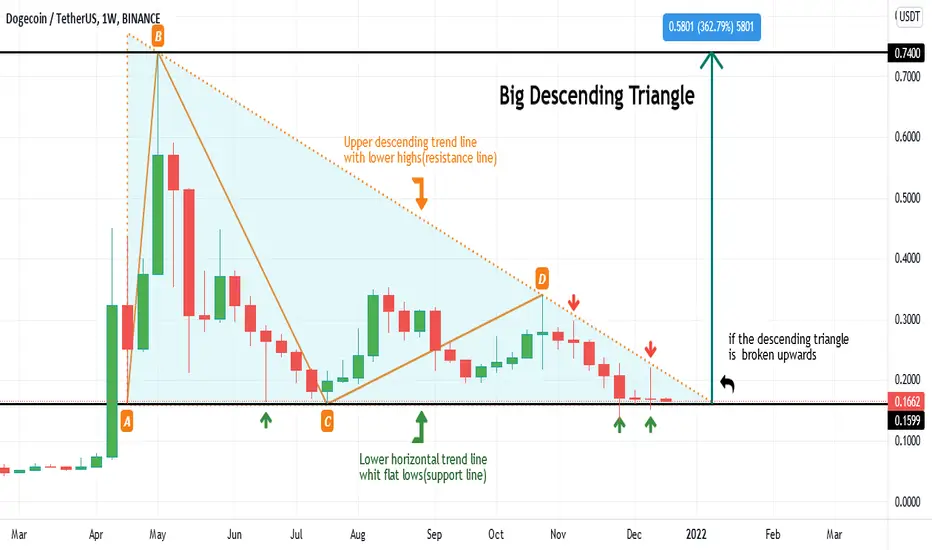 Hello dear friends,in the weekly time frame, a large descending triangle can be seen in the doge coin chart. If the big triangle breaks upwards in the coming weeks ,the doge price is expected to rise by the height of the triangle.