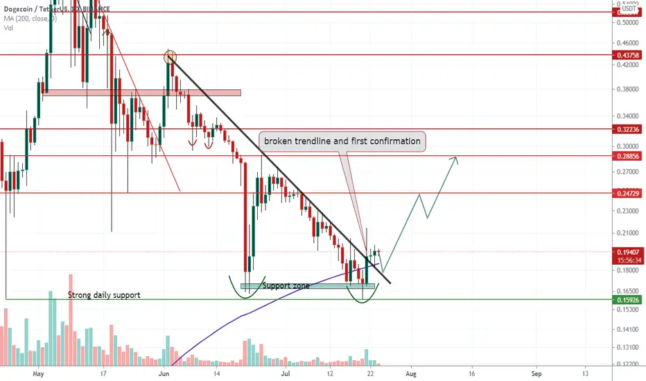As we can see price receive a strong pump on 21 Jul and was successful to break the downtrend trendline and now we may have a great amount of rise after that deep fall.