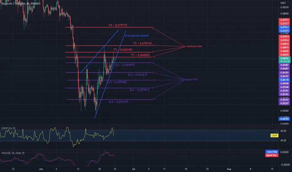 Hello everyone, let's take a look at the 4H DOGE to USDT chart as you can see the price is moving in the uptrend channel.