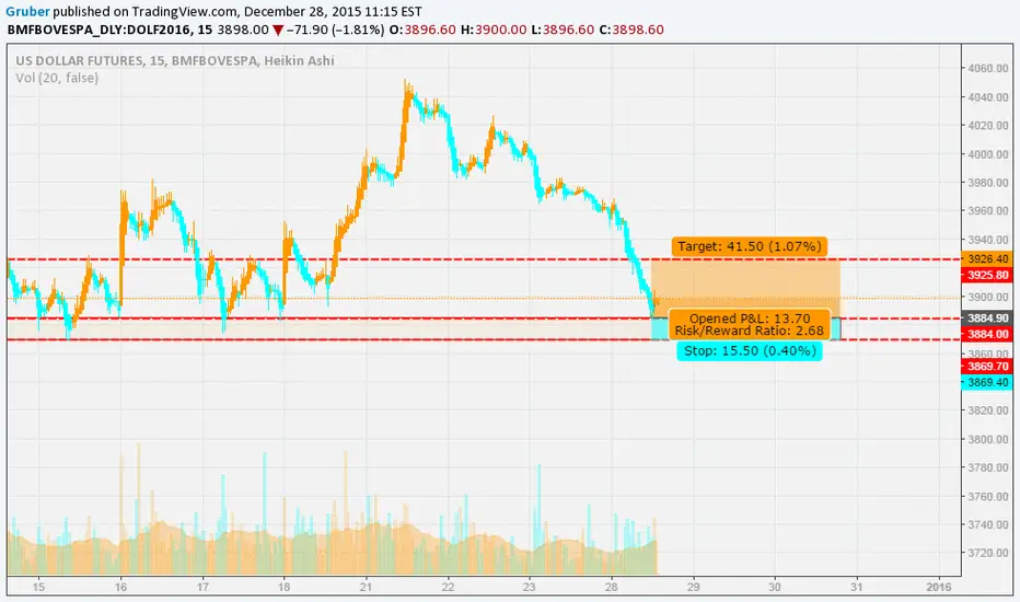 Quick scalp on the Future US Dollar against the Brazilian real. It's a pullback trade, which means it's pretty risky on my concept. (You are trying to find a quick reverse with a poor r/r)