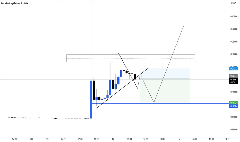 The 1-hour chart for DORA/USDT on OKX is showing a potential bullish structure following a sharp upward movement. The current price action suggests a retest scenario before a potential continuation to the upside.