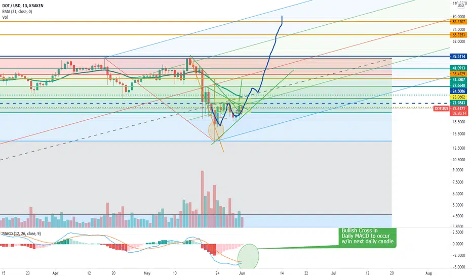 Bullish cross about to occur in DOT - 20 EMA about to cross over the 34 EMA in the next 4H candle.... DOT continuing to look really strong with the Swedes listing of the DOT ETP... gaining more momentum as market takes notice.Note