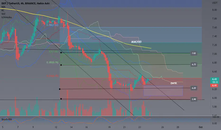 DOTUSDT 4H – technical factors such as the 200-period moving average, coinciding with the monthly VWAP, points to an asset appreciation, it may experience resistance when passing through the ichimoku cloud, but it will quickly reach MM200. we can expect an advance to the $7.0 target however, let's wait for the DOT to reach $6.20 to make an entry. So from the limit order to the proposed target, we would have an average profit of 12% in the spot.