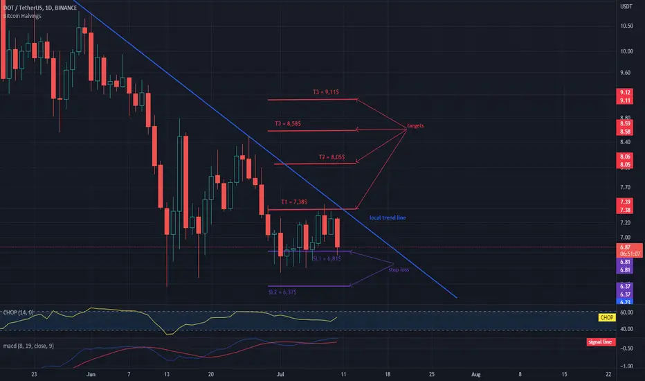 Hello everyone, let's take a look at the 1D DOT to USDT chart as you can see the price is moving below the local downtrend line.