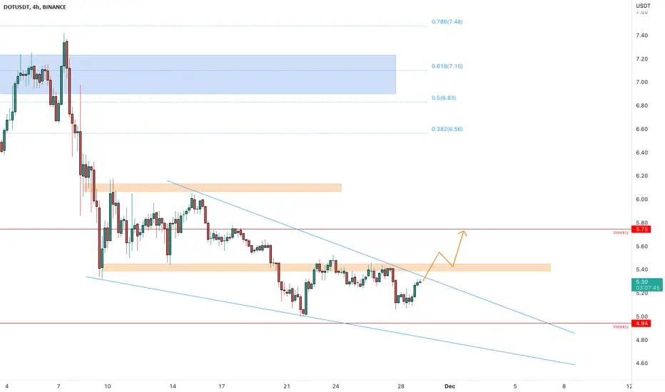 The price is testing the falling wedge resistance above the weekly support