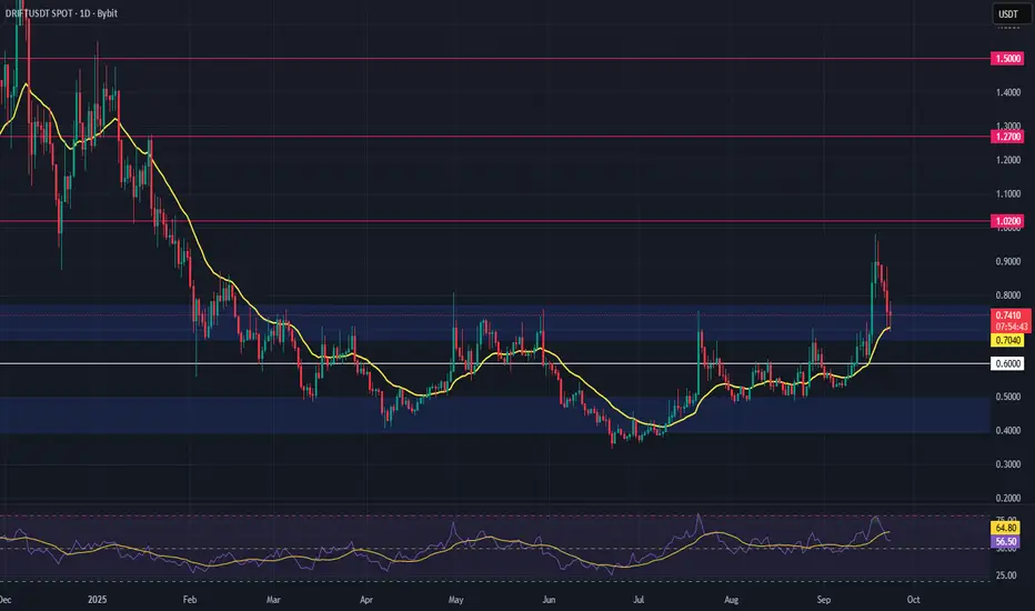DRIFT is showing strong bullish momentum after months of accumulation. The token has broken out, printed a higher high, and is now retesting the previous range high as support — a classic setup for continuation.