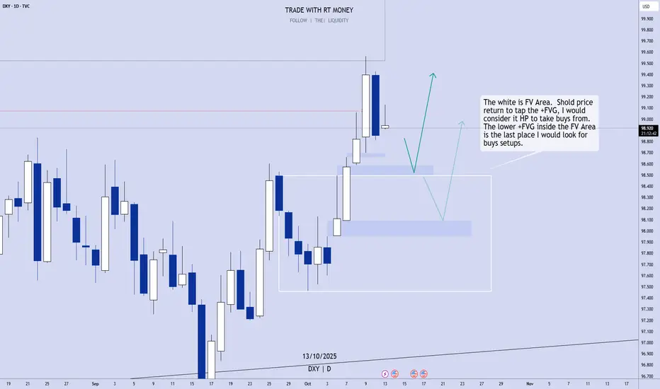 Friday's candle notwithstanding, the USD is strong, and still bullish. Taking sells into the bullish Fair Value Area is not a good option. Looking for buys at the _FVGs is!