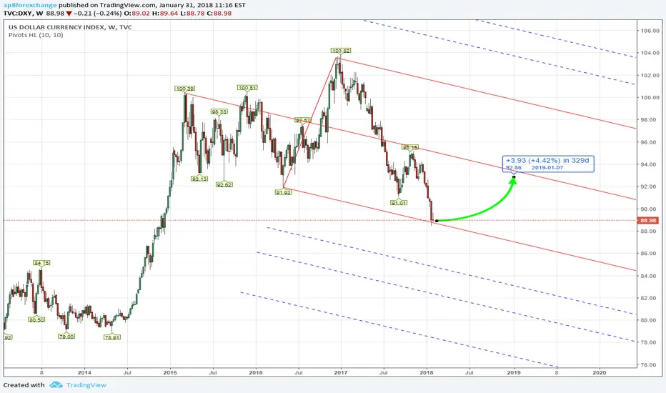 Perfect area for US Dollar to rebounce on lower line pitchfork