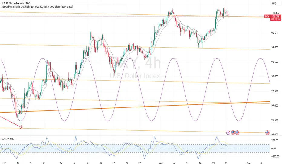 At the moment, DXY is trading near a potential cycle peak, and with the next downward phase approaching, the probability of a short-term pullback increases. Momentum indicators are also softening, offering further confirmation of cycle pressure beginning to turn.