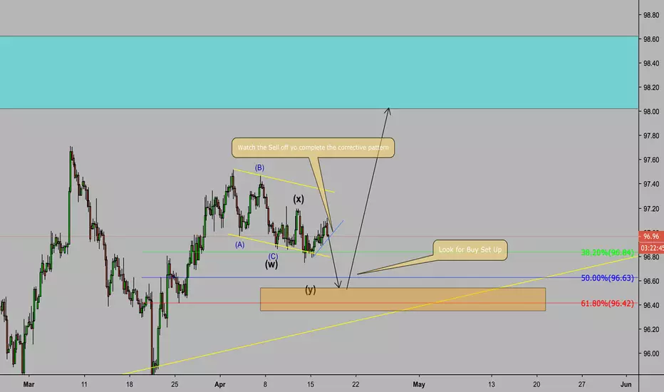 The US Dollar Index is looking to make a bearish push to the orange box to finish the complex W-X-Y corrective structure. After the corrective structure is finished look for the Buy set up for the Dollar to make higher highs in the Bullish tremd