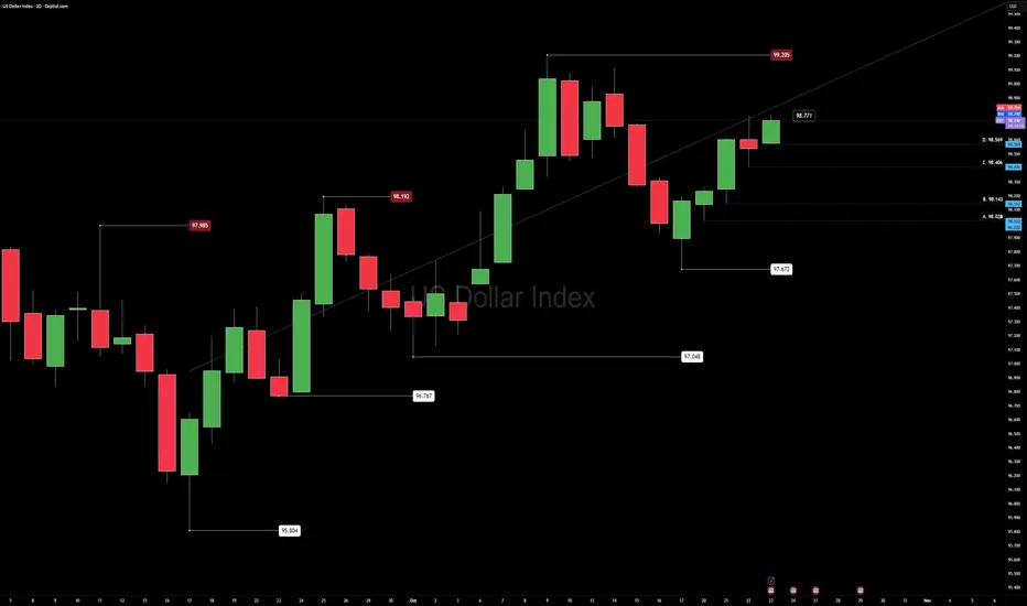 Patience near 99.205 is key — a clean breakout with retest would confirm continuation; failure there could mean another controlled rotation inside the range.