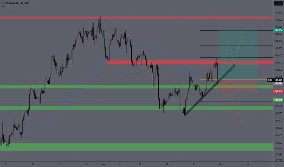 1 Bullish scene - price continue moving up, brake strong resistance at 103.400 then retest it and go to weekly resistance.