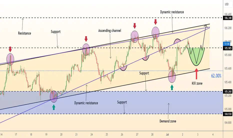 The chart touched the lower boundary of the channel and bounced off the 62% retracement level.