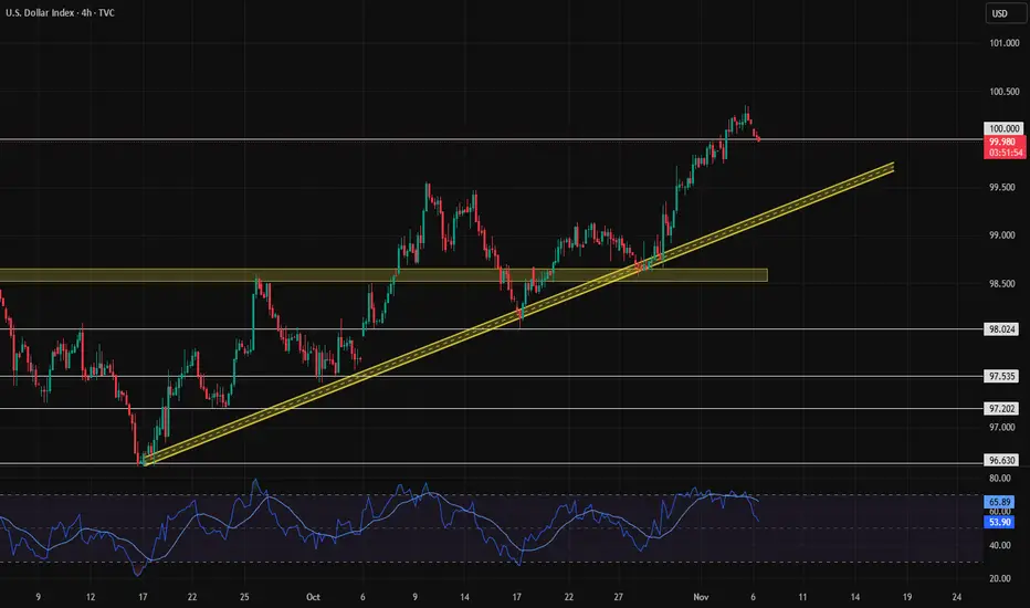According to our previous analysis, the Dollar Index finally managed to reach the 100 zone. Now we need to see whether it can close above the 100 level without making a fake breakout downward. If it can give a solid close above 100, then we can start considering long positions on the Dollar Index or sell positions on EUR/USD.