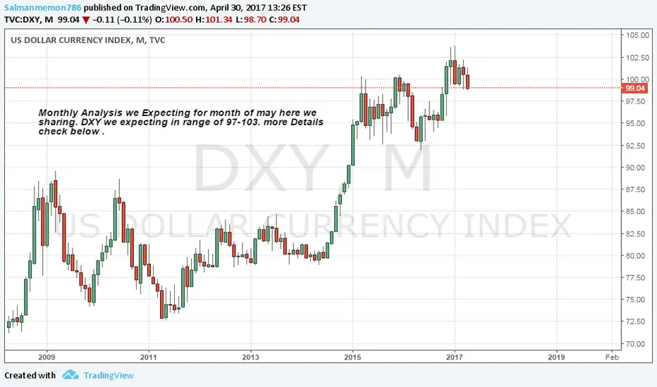 If we see DXY trading in range of 98-104 for few months and also 98 level is Strong support for it too breakage may call for more low but as monthly we can expect low around 97 where high 103. If we talk about other pairs.