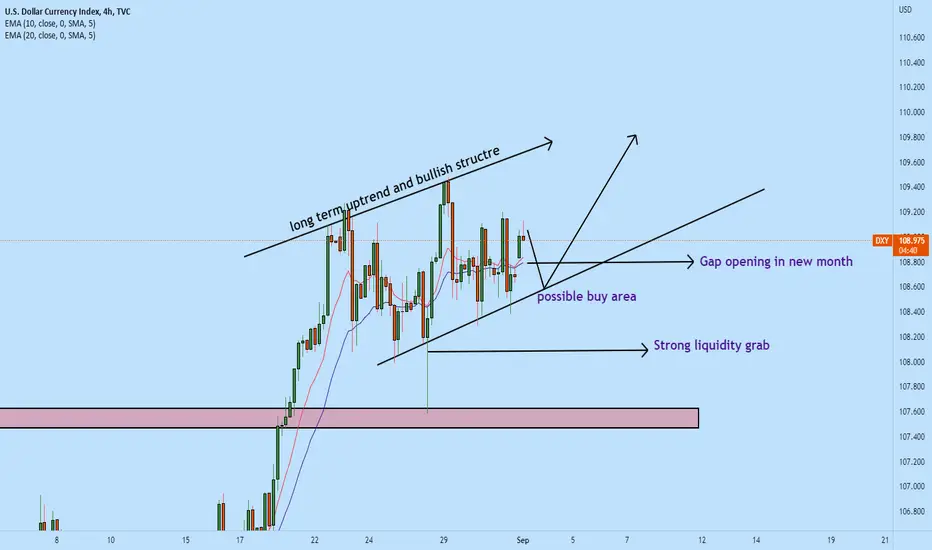 DXY has opened with a big gap in the monthly perspective. With the long-term bullish market structure, DXY is preparing to continue its uptrend. It is a high probability that DXY will test the support of this structure and will bounce off to the upside.