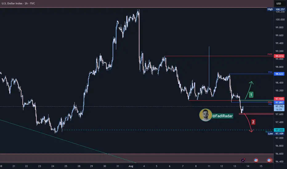 If bullish momentum emerges and the index breaks above 97.90 with a confirmed hold, it could retest the 98.50 level.