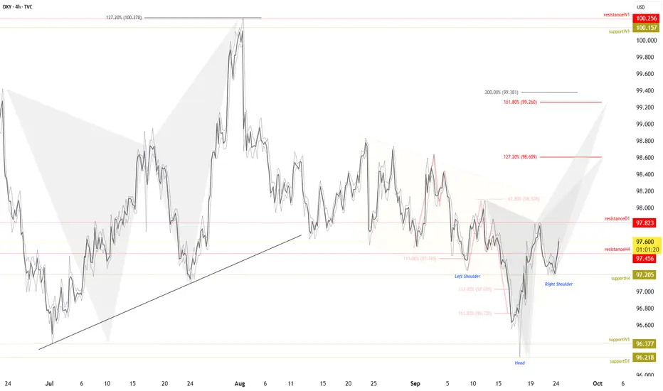 The confirmation or rejection of the $97.82 neckline will be pivotal in defining the next directional phase for the DXY. We should monitor price behavior carefully at each Fibonacci extension, balancing the potential for continuation against the risk of harmonic-driven reversals.