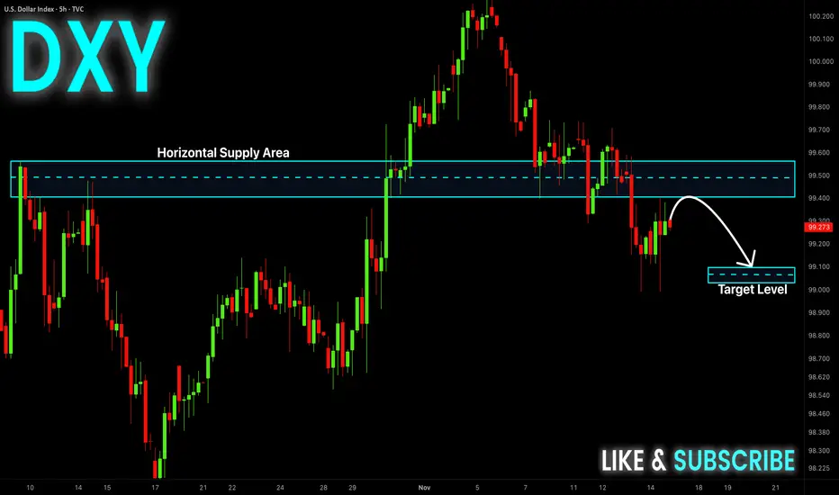 DXY price taps into a clean supply block, creating a shift in order flow as liquidity above the highs gets swept. A corrective push toward the next demand pocket is likely. Time Frame 5H.