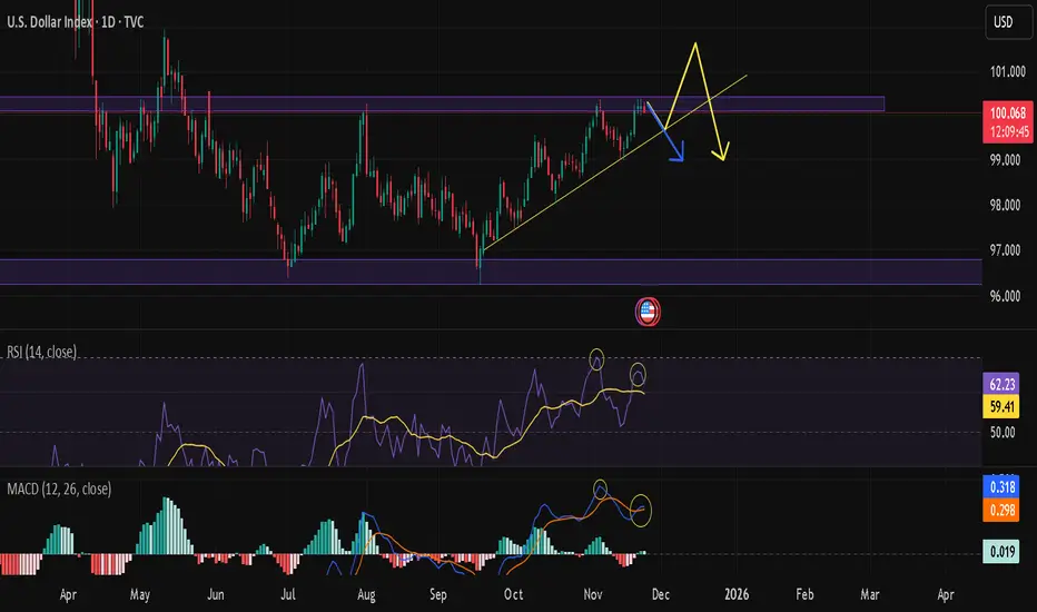 Fed Expectations: The market is scrambling to rethink the Fed's rate path for 2025. We are watching the data like hawks right now; even a small sign of cooling in jobs or PMI data could spark a rejection from this resistance and send the DXY correcting downwards.