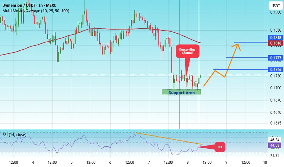 There is a major support area in green at 0.1690, which represents a strong support point.