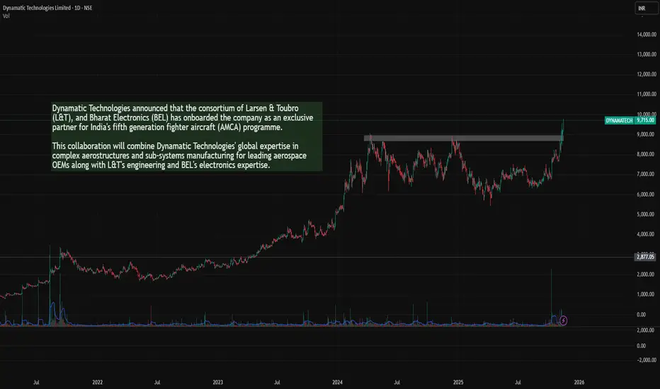 Dynamatic Technologies announced that the consortium of Larsen & Toubro (L&T), and Bharat Electronics (BEL) has onboarded the company as an exclusive partner for India's fifth generation fighter aircraft (AMCA) programme.