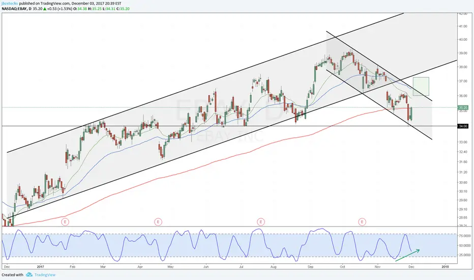 EBAY has stochastic divergence on trend line support.