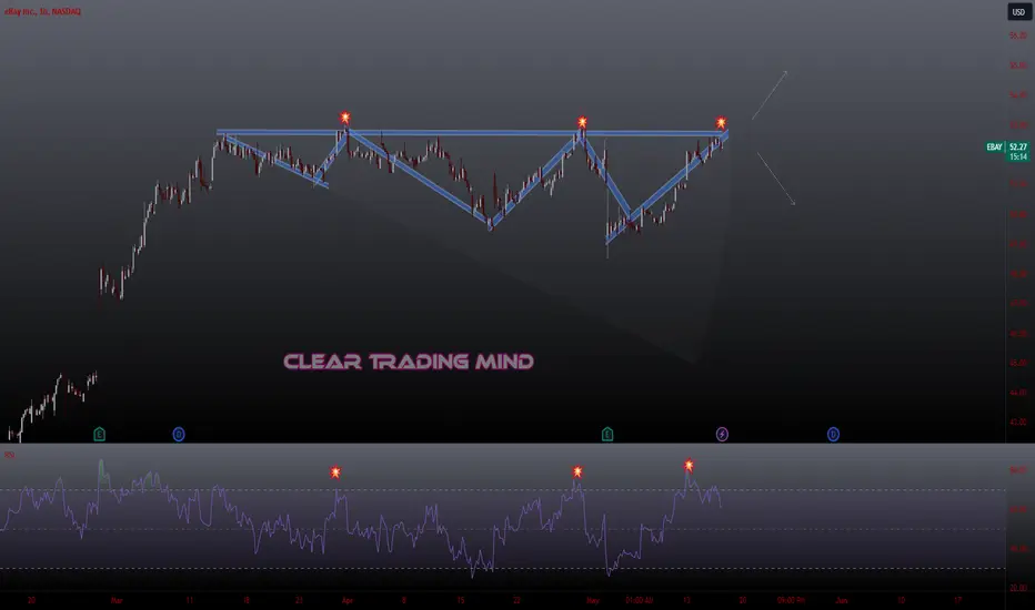 The eBay stock trend is testing a strong resistance zone at the 53.00 level. On the 1-hour chart, the price has attempted to break this level three times and failed. The RSI indicator shows a similar pattern, indicating strong resistance. This moment, we need to wait to see if the price will break this level or pull back. This is crucial to keep an eye on this asset's trend for a potential jackpot entry. What do you think? Let's wait and see