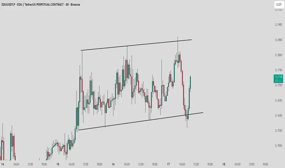 EDU is currently trading within a clear horizontal range. After rebounding strongly from the lower support zone, price is now moving upward toward the range resistance.
