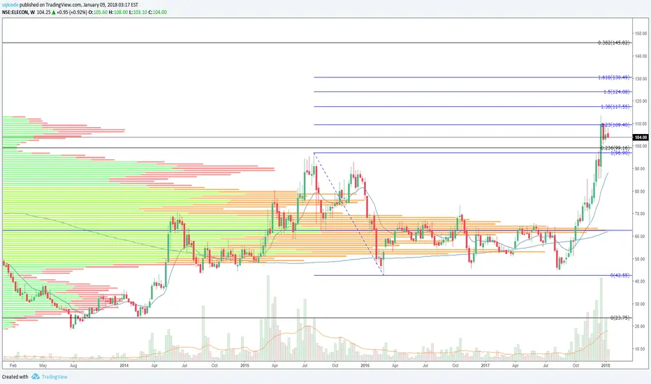 Elecon for short term bullishness. Chart self explanatory at different level. Elecon entered null volume territory which allows price to move up/down quickly around support and resistance areas. Expecting Elecon to consolidate between 1 and 1.23 fib levels before next leg up. it shouldn't loose 99.16 level.