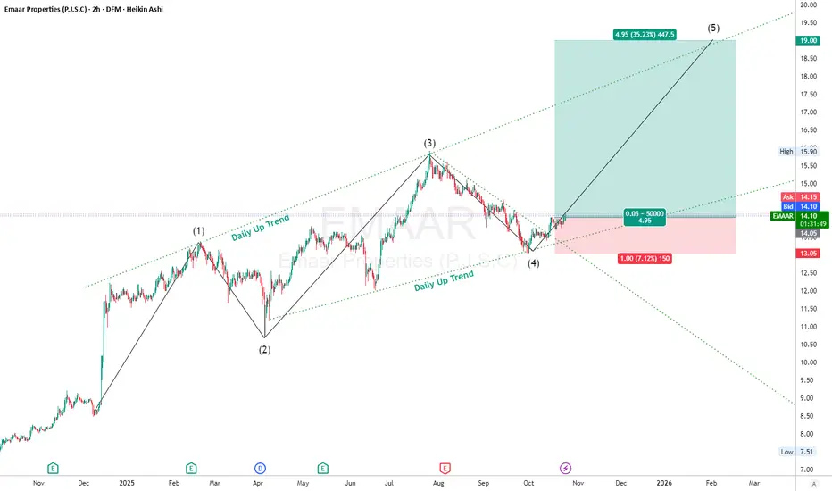 EMAAR has been grinding in a strong impulsive 5-wave structure since early 2025.