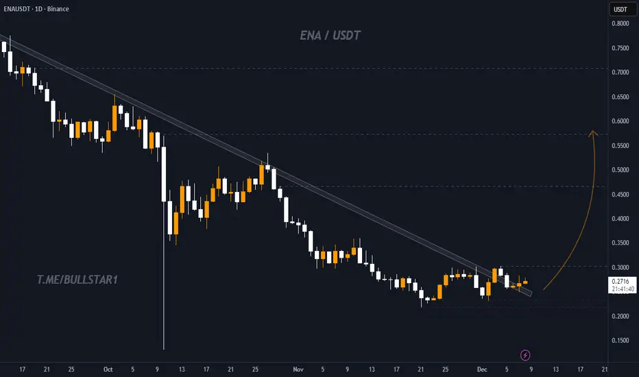 ENA is showing the first signs of breaking the downtrend. The price is holding well above the current zone and a clean breakout of the trendline could open the way for a strong move toward the 0.55 area, where liquidity and heavy resistance are positioned. We are monitoring closely for a more sustained upside in the coming days.