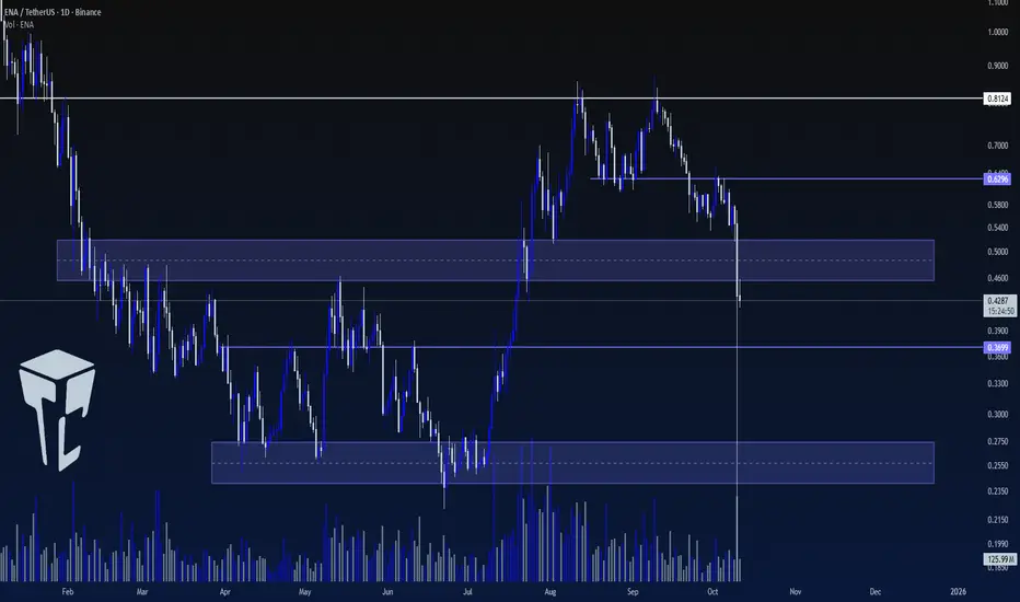 ✨ For now, the result of these events has been a sharp market decline, which has also affected this coin. ENA has now stabilized below the $0.5 support zone and printed a very long shadow to much lower levels.