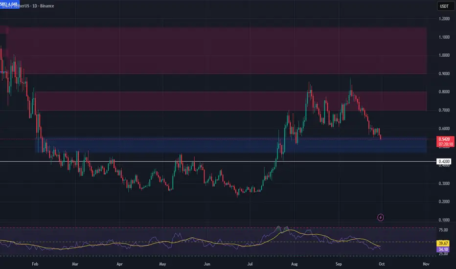 Stop Loss: Daily close below $0.42 (structure invalidation)