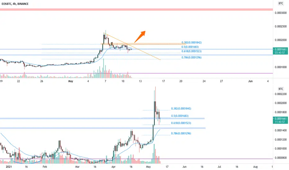 EOSBTC wants 0.003, where the price will test the weekly resistance. At the moment the price is testing 0.5 Fibonacci Level below the 4h resistance. IF the price will have a breakout from resistance, According to Plancton's strategy (check our Academy), we can set a nice order