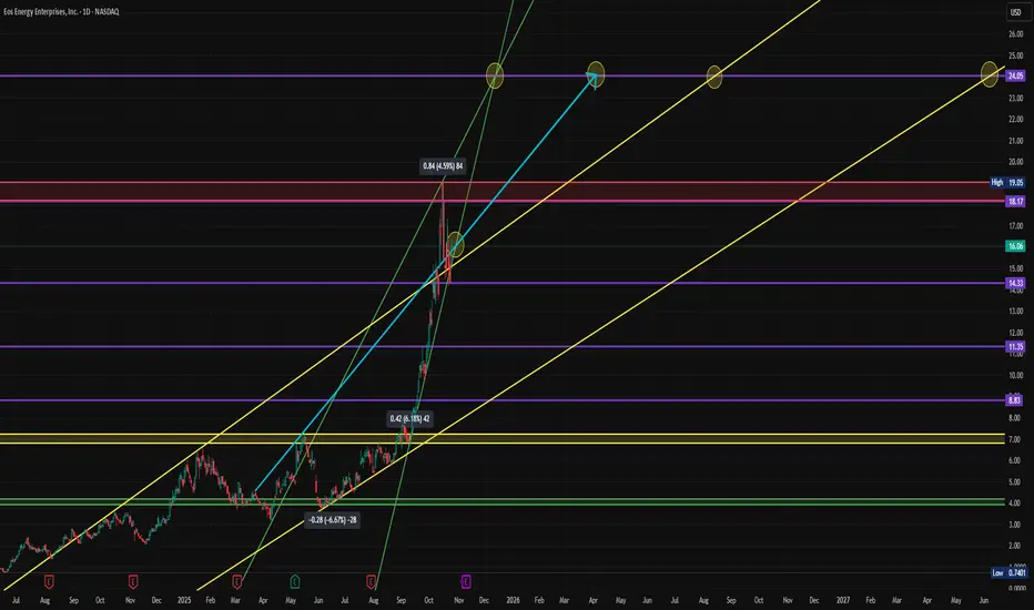 After a massive rally, price is now consolidating above $14.33 support while eyeing resistance near $19.05 and the next projection zone at $24.05 based on trend channel extensions (see chart).