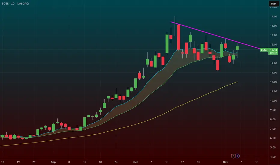 EOSE) is showing impressive relative strength today — holding firm and building out a flag pattern even as the broader market (