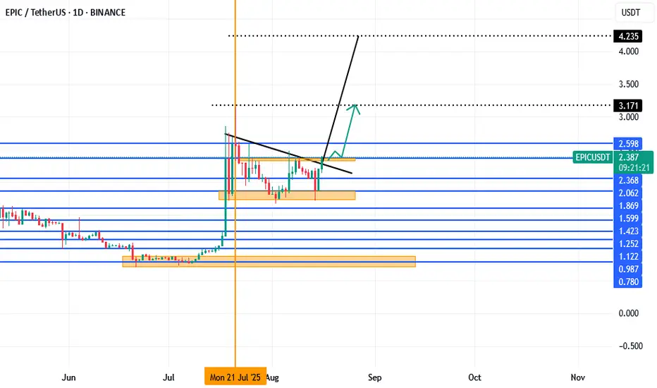 - Bullish Wedge that is clearly visible and the ideal entry point was the candle that retested the diagonal resistance trendline but one can take a BUY now and your take profit will be at 4.235.