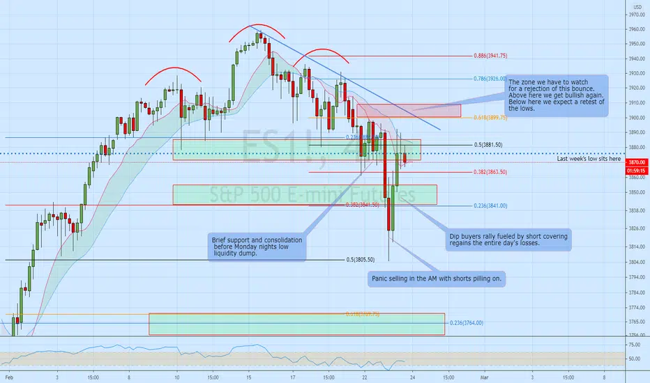 Here is an updated chart that I posted on Feb 18th. In the chart I highlighted areas to watch for potential reversals in the event of a sell off. As price sold off it found brief support at my first green zone only to drop significantly overnight and was followed up by some panic selling in the am which undercut my second green zone sharply. We then got reassurance from Powel that the money printer still works and the dip buyers stepped in and the shorts covered driving price back up to where it started. The question now is... where does price go from here. If price stays below the 618 (red box) I will remain bearish as price can easily reject from here and retest the recent low. If price can reclaim the 618 (red box) and move higher the probabilities favour a continuation of the bullish trend. For the time being I have stopped trading options to the long side. Buying straight long calls or long puts in a choppy market like this is a guaranteed account killer IMO . You will end up paying a high price for premium and may not get the follow through needed to push option prices up. It is much easier in these conditions to simply trade equity which is what I will do if the opportunity arises. Also, sometimes it is best just to sit on your hands and wait. Now is likely one of those times until we get some clear direction.