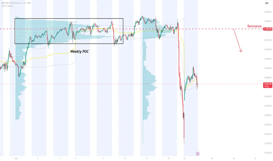 ES – Weekly POC Resistance at 6784 with Bearish Fair Value Gap