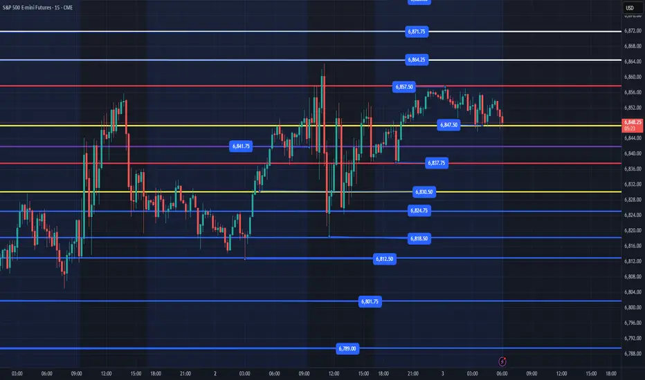 Let's discuss today and what we are looking for. Our overnight session low is 6837 and our high is 6857. Price has been building a very tight range over the past few sessions, and we are getting close to a breakout or breakdown that could trigger today or tomorrow. Since we are not fortune tellers, we will need to focus on identifying levels we can grab points from today.