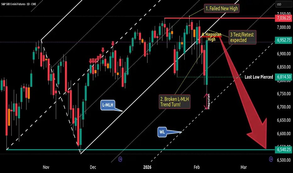 4. And if you dig really deep, you also see the Hagopian against the Warning-Line (WL), which confirms the thesis of the Test/Retest of the L-MLH. Because Hagopian says, that price will go farther in the opposite direction than from where price came. In clear words: Price will go higher than the "Hagopian High". And to be precise, I expect the S&P500 to test the L-MLH.